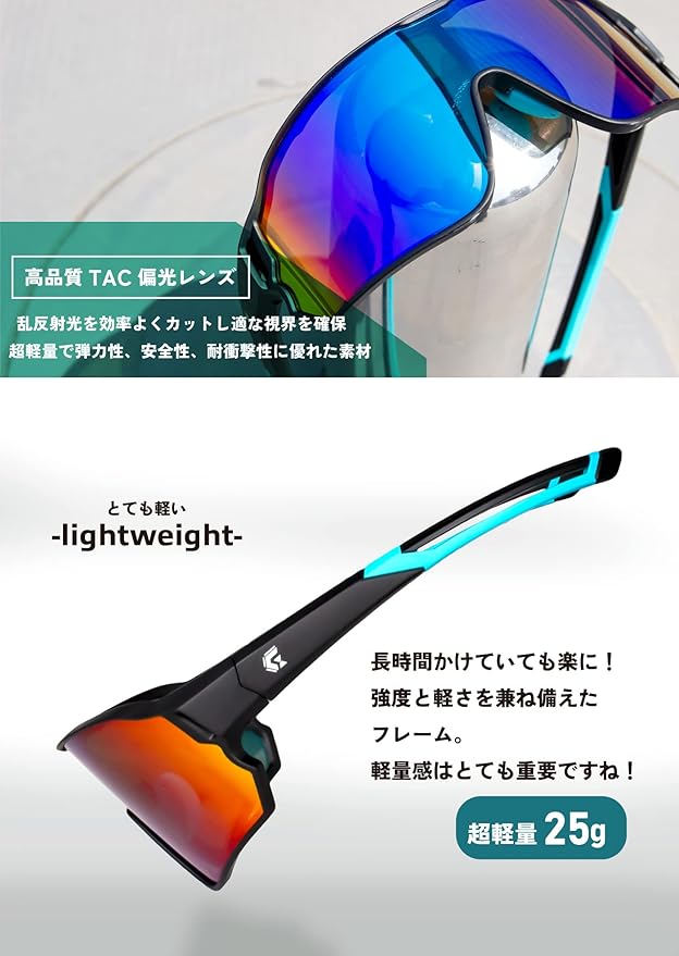 [ゴリックス] スポーツサングラス 偏光 サングラス 偏光レンズ 紫外線 UVカット メンズ レディース 軽量 おしゃれ ワイドレンズ 大きいレンズ 軽量(GS-POLA140 ピーコックグリーン) 痛くなりにくい ロードバイク 自転車 野球 ミラーレンズ ランニング 運転 ゴルフ 釣り 車運転