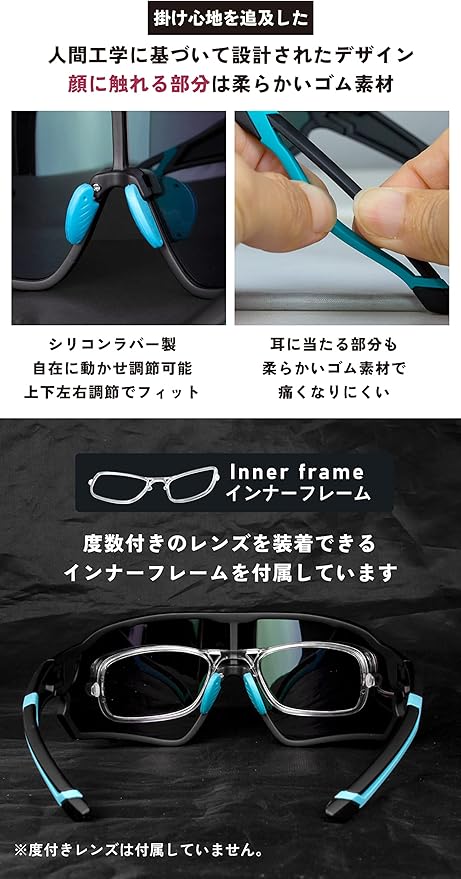 [とても軽量]約25gととても軽量で長い時間装着しても疲れにくい。軽量感はとても重要ですね!+強度と軽さを兼ね備えたフレーム。[サイドに風を通す穴デザイン]熱が籠らないようにサイドに通気穴を設置しています。空気が通り熱が籠らず快適に。