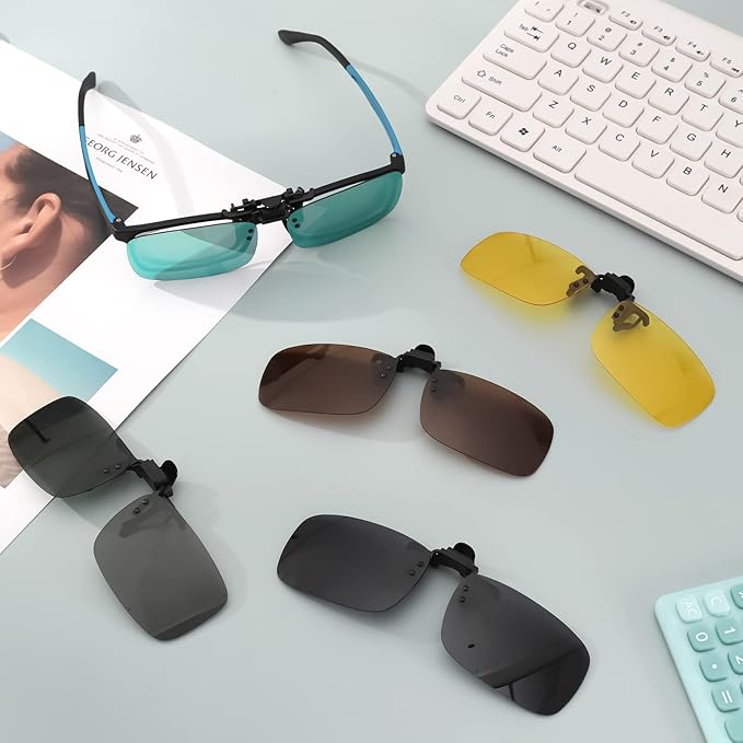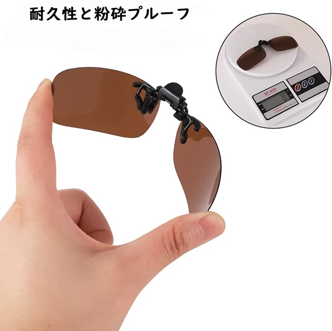 【クリップオン式】クリップをメガネに挟んで、お手持ちの近視眼鏡に素早く取り付けられ、跳ね上げもでき、簡単に使用できます