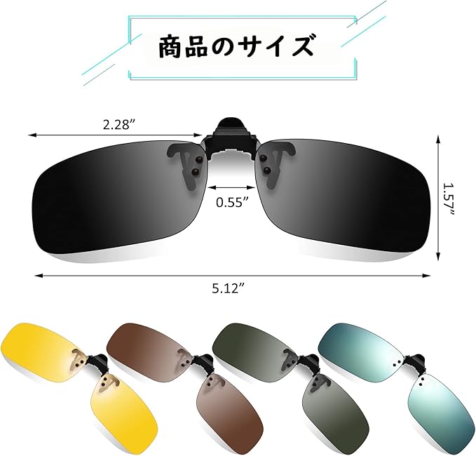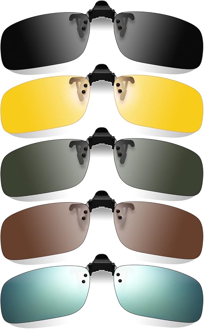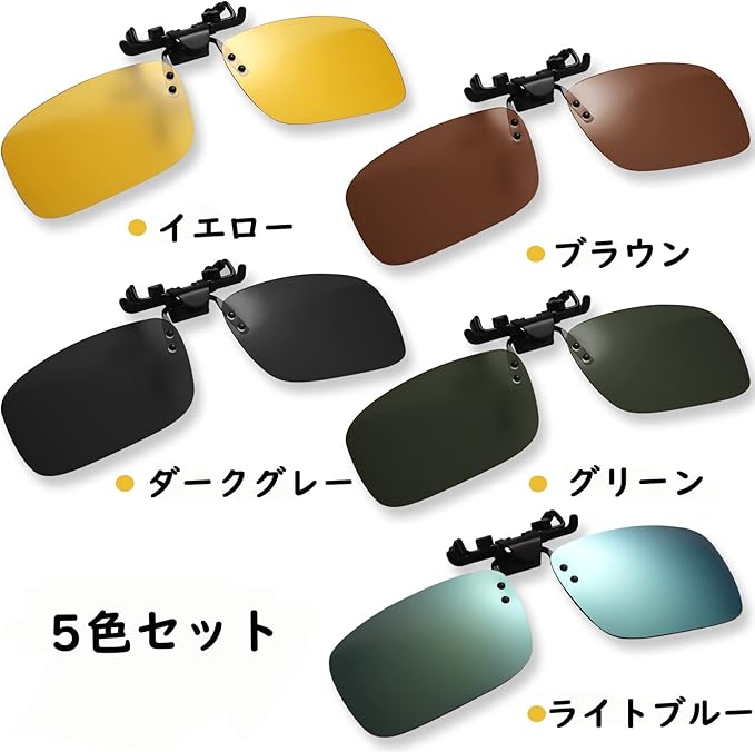 [Hitchlike] 偏光サングラス クリップオン 5色セット UV400 紫外線カット 跳ね上げ式 固定タイプ 偏光レンズ 超軽量 運転 自転車 バイク 釣り アウトドアなどに 前掛け 夜用 昼間用 オーバーサングラス