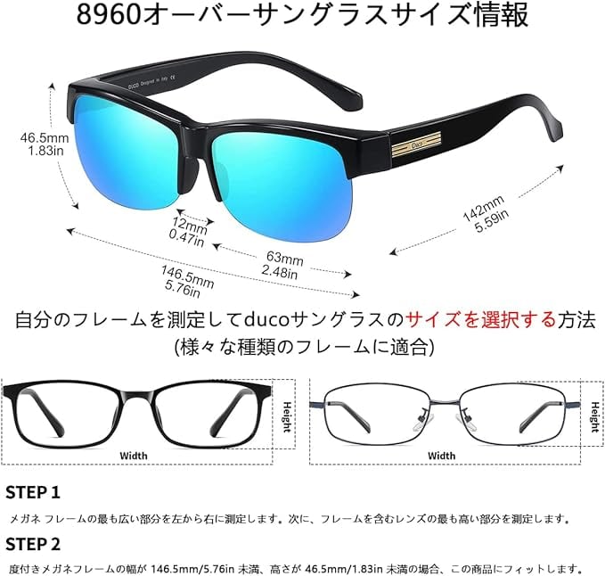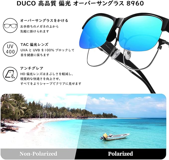 [DUCO] メガネの上から掛けられる オーバーサングラス めがね さんぐらす 偏光レンズ UV400 紫外線カット 花粉サングラス メンズ レディース兼用 8960