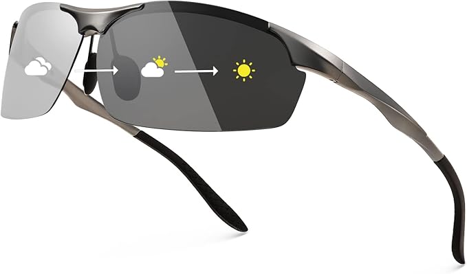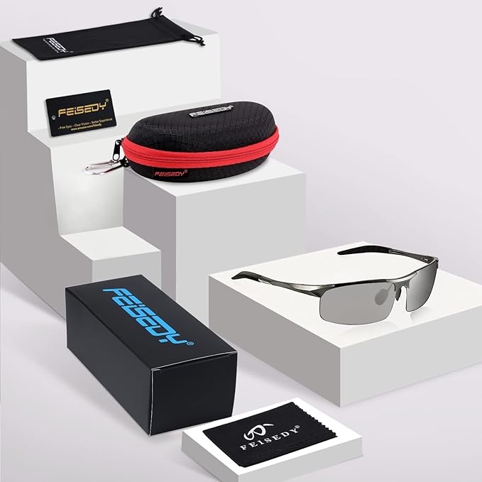 [FEISEDY] 偏光調光サングラス メンズ UV400 オーバル スクエア スモール 小さめ 合金 ハーフリムフレーム 軽量 スポーツ 自転車 釣り 運転 B1087
