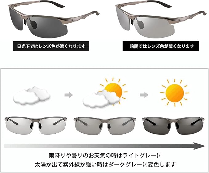 色: グレー 調光変色レンズ