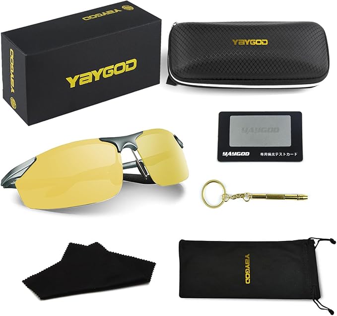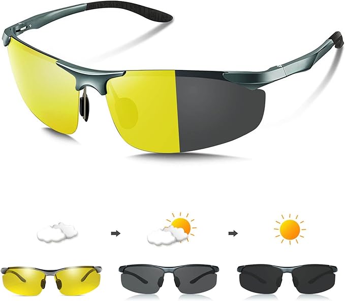 [YAYGOD] 調光サングラス 夜間増光 昼夜兼用 偏光サングラス [昼夜兼用/快速変色/紫外線カット/超軽量/] 紫外線感知 調光レンズ スポーツサングラスUV400 釣り ゴルフ 野球 夜間 運転 ドライブアウトドア 登山 変色調光グラス