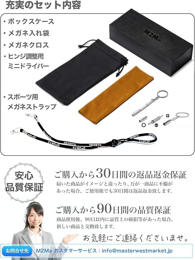✅【便利なセット内容】:レンズを傷付けず持ち運びやすいメガネ入れや、大きくて使いやすいメガネクロスを始め、スポーツ用ストラップ(リード)など屋外での活動時に便利な付属品をセットにしました。