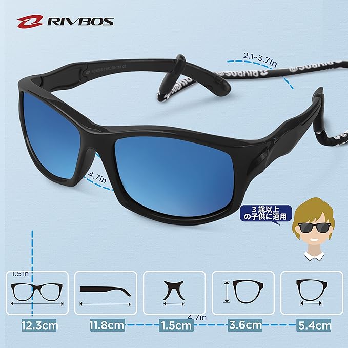 [RIVBOS] リバッズ RBK003 キッズ 子供用サングラス 偏光レンズ ゴムフレーム UVカット ボーイズサングラス ガールズサングラス…