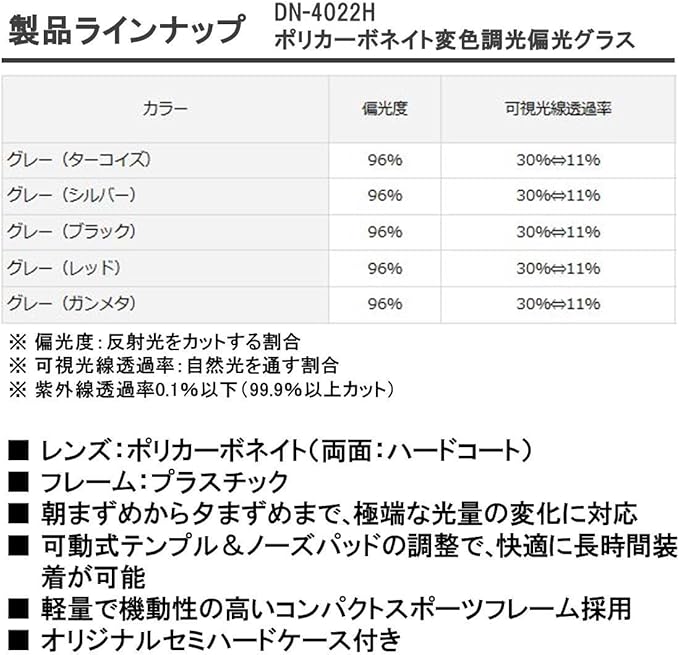 ダイワ(DAIWA) ポリカーボネイト変色調光偏光グラス DN-4022H 各種