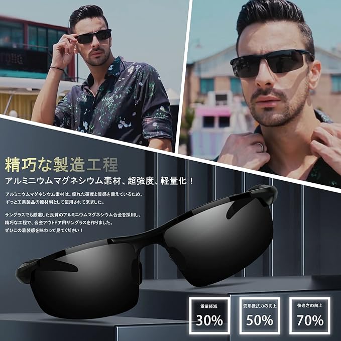 【視覚疲労を抑え】:夏や日差しが強いときに高性能偏光レンズは紫外線、眩しさや有害なライトをカット、景色は見やすくて目の疲れも軽減でき、快適な視界を提供します。