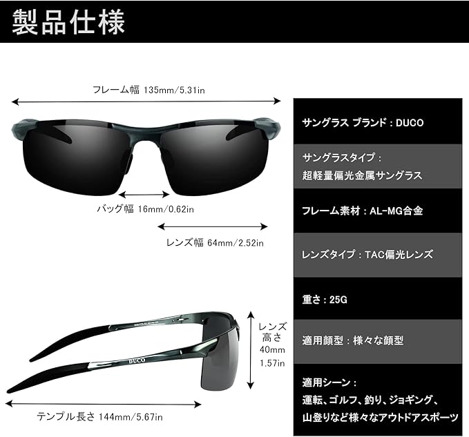 [DUCO] サングラス メンズ 偏光 スポーツサングラス UV400 へんこう さんぐらす AL-MG合金 超軽量 sunglasses for men 運転/自転車/釣り/ランニング/ゴルフ用 8177