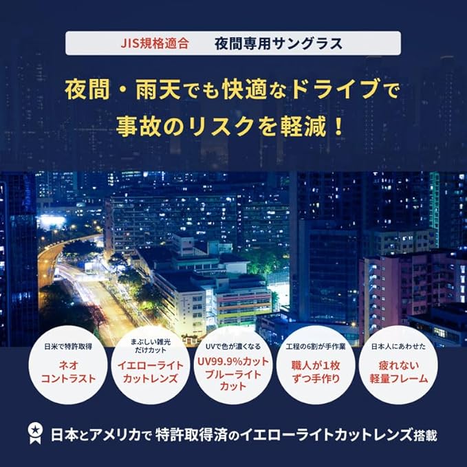 昼夜兼用で話題のネオ コントラスト グラスの クリップ オン(LLサイズ) 特許のイエローライトカットで劇的に見える! 可視光線透過率76%で夜間運転に適合 紫外線は99.99%カット