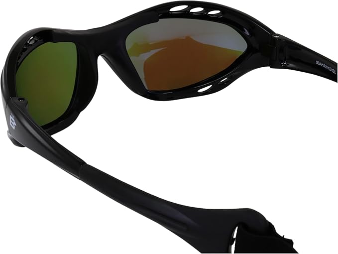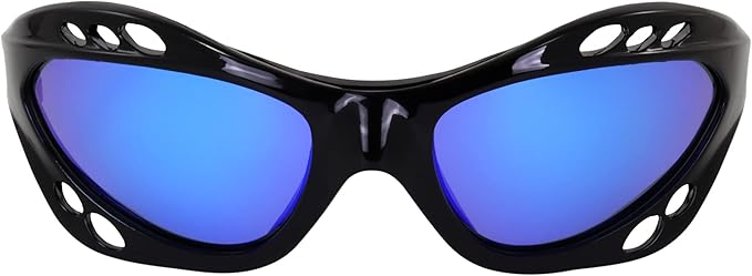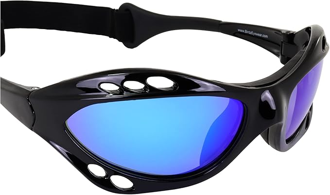Birdz Eyewear Seahawk パッド入り偏光サングラス ジェットスキー カヤック ウォータースポーツ ジェットスキーゴーグル ストラップ内蔵ブラックフレーム ブルーミラーレンズ付き