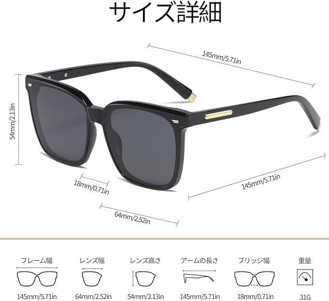 色: 【A1】偏光レンズ:ブラック + フレーム:明るい黒