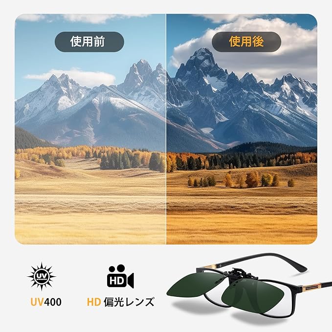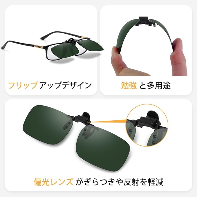 [Uacllcau] クリップオン サングラス 偏光 - UVカット 跳ね上げ式 度付きサングラス 超軽量 メンズ レディース スポーツ 運転用
