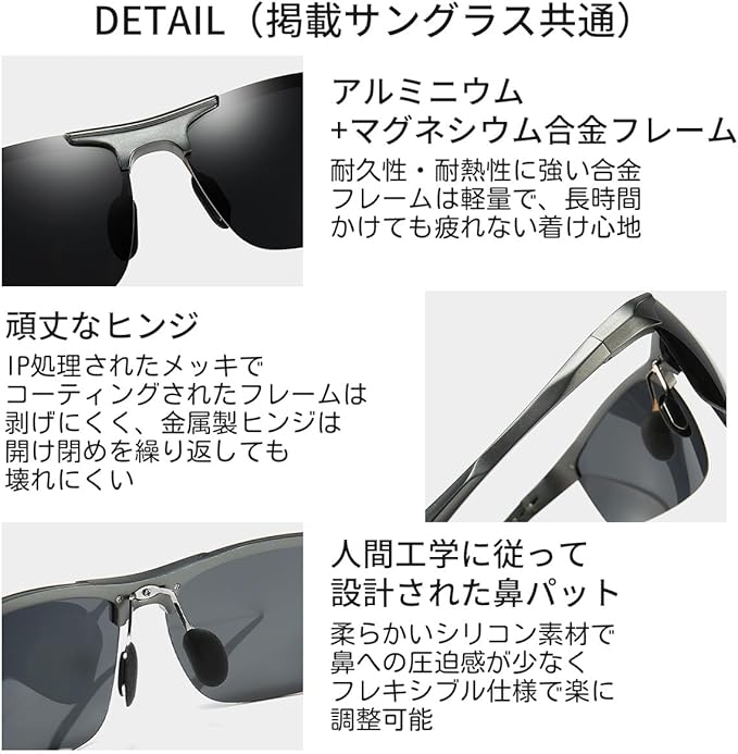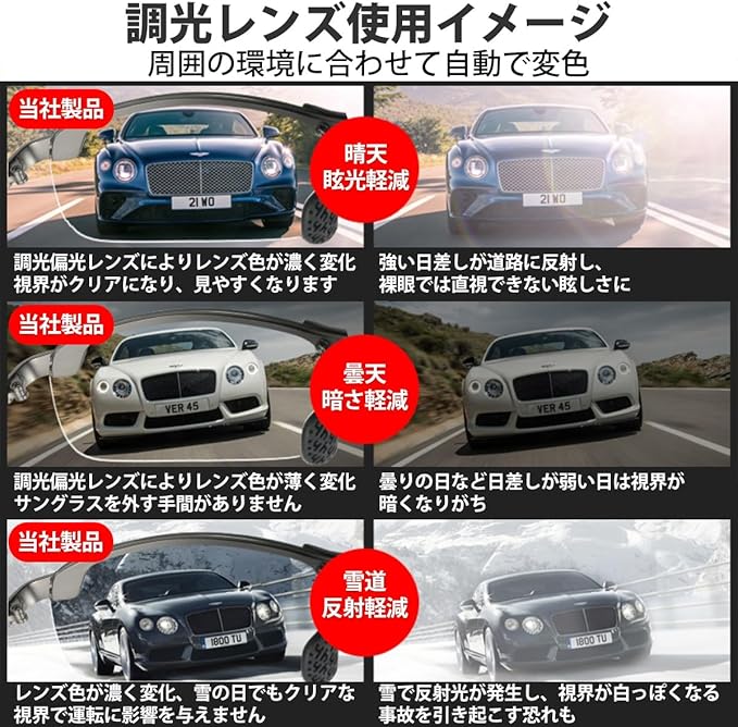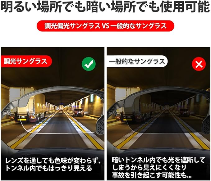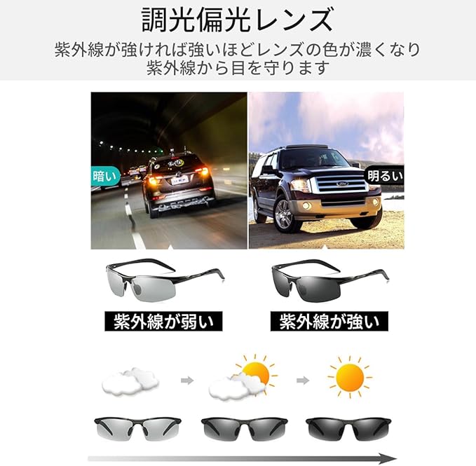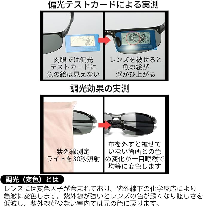 【商品説明】 商品名:偏光・調光サングラス 付属品:サングラス、メガネケース、メガネクロス、ミニドライバー 生産国:中国