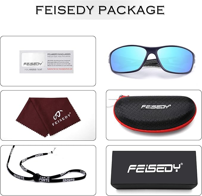 Feisedy スポーツ サングラス メンズ TR90 偏光 サングラス uvカット ゴルフ 釣りランニング 野球 自転車用 超軽量 プレゼント B2616