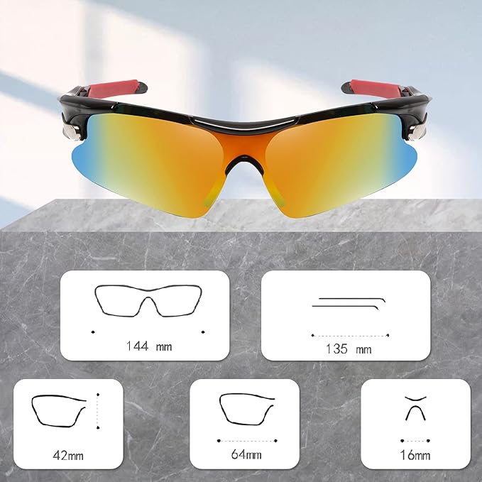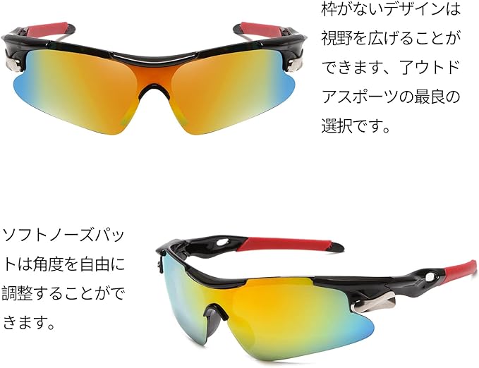 ★【TR90フレーム・耐用性抜群】 当スポーツサングラスはTR90製フレーム採用、安定感抜群、超軽量、弾力性、安全性、耐衝撃性が非常に優れる特徴があり、長時間着用しても違和感がありません。落下するときにも破損しないです。