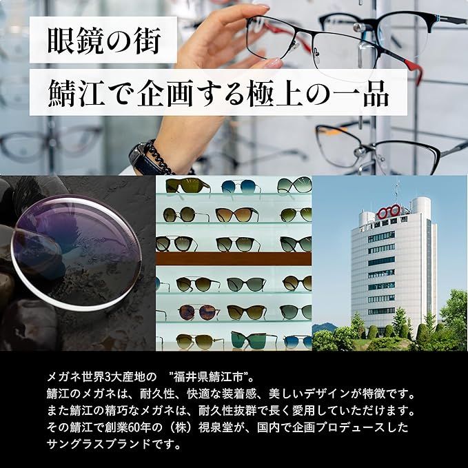 メガネの世界三大産地、福井県鯖江市に所在する創業60年の老舗(株)視泉堂プロデュースの高品質偏光サングラス ■Amazon用オリジナルバリエーションをラインナップ