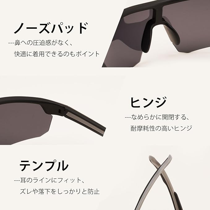 【高品質で軽量】スタイリッシュなスポーツサングラスのフレームには、柔軟性と強度に優れたTR90ナイロンが使用されており、圧力がかかっても壊れることなく曲がります。非常に軽量で、長時間着用しても快適で、まるで重さを感じないほどです。