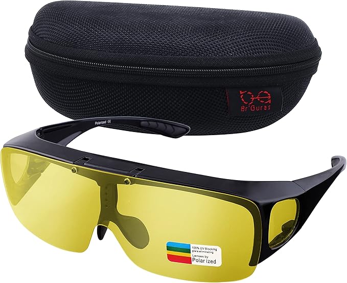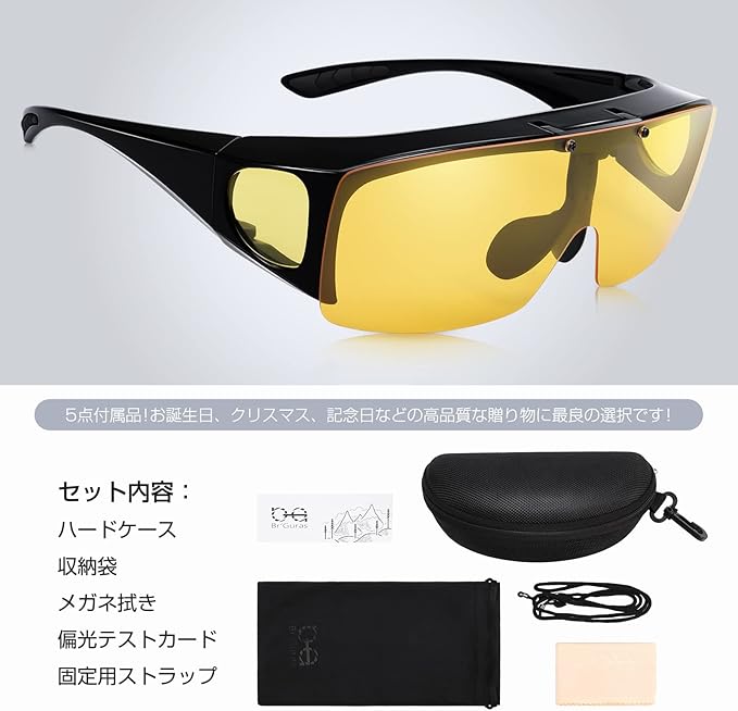 [Br'Guras] サングラス スポーツ 運転用サングラス メンズ 偏光 UV400 紫外線カット メガネの上から掛け 跳ね上げ式 防風防砂 自転車/釣り/ランニング