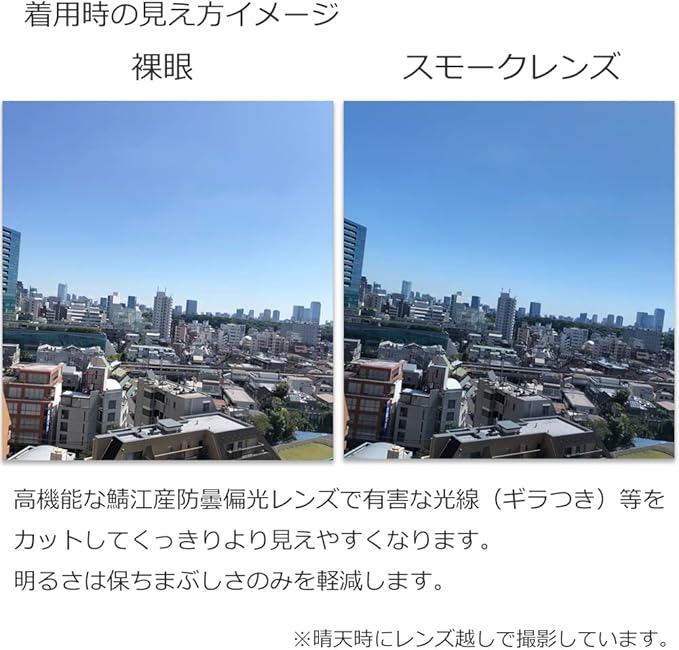 ドライブ(運転)・ゴルフなどのスポーツ・釣りにおすすめの偏光サングラス。紫外線カット率99.9% ブルーライトカット率65% 偏光度99% 可視光線透過率34%