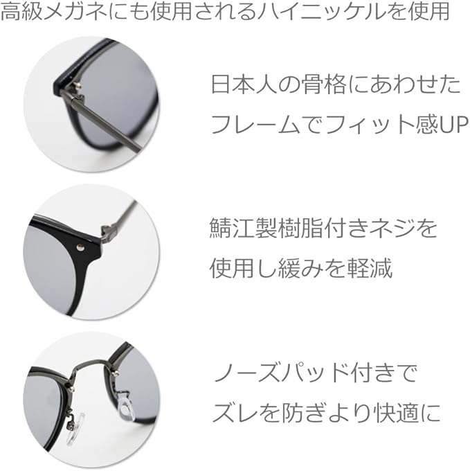 [エイトトウキョウ] 曇り止め 偏光サングラス ドライブ 運転用 ボストン 高級コンビフレーム [ 鯖江産レンズ ] P-HN-1104