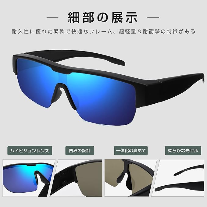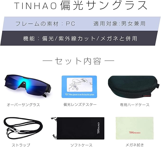 [TINHAO] オーバーグラス 偏光 めがねの上からオーバーサングラス 軽量TR90 スポーツサングラス 偏光レンズ UVカット 反射光・強光・眩しい光防止 ドライブ/ゴルフ/釣り/ランニング/アウトドア メンズ レディース 偏光サングラス