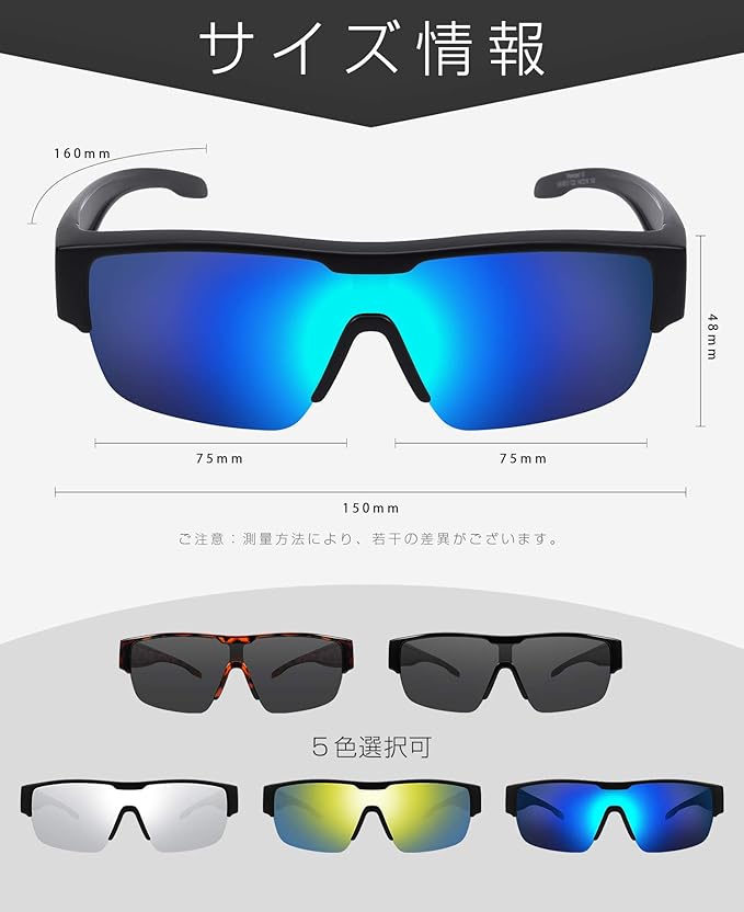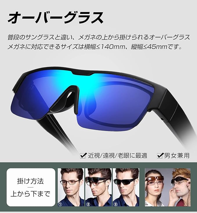 【メガネの上からオーバグラス】メガネの上からかけることが出来るオーバーサングラです。使用可能なメガネサイズは約138x43mmです。#サイズを確認してからご購入してください。また、 専用のケースやメガネ拭きもついているので便利です!
