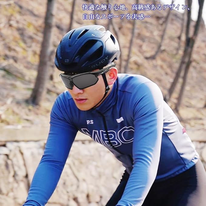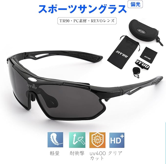 [自由スイミン] スポーツサングラス 偏光レンズ 軽量 滑り止めストラップ付 UV400カット おしゃれ ノーズパッド調節可 TR90 PC素材 汗ベタつき防止 耐衝撃 日本向き ゴルフ 自転車 釣り 山登り 運転眼鏡 sports sunglass