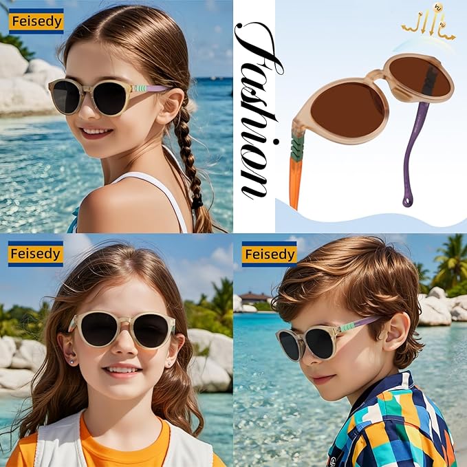 【3~12歳のボーイズ&ガールズ】FEISEDYは太陽と自然の中で質の高いファッション体験を提供することを目指しています。シンプルなデザインと豊富なカラーで歳男の子も女の子もお使いいただけるキッズサングラスです。