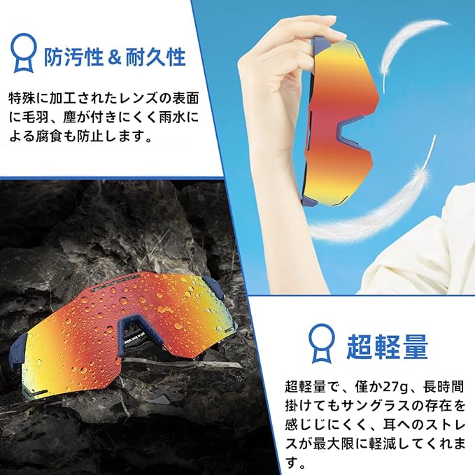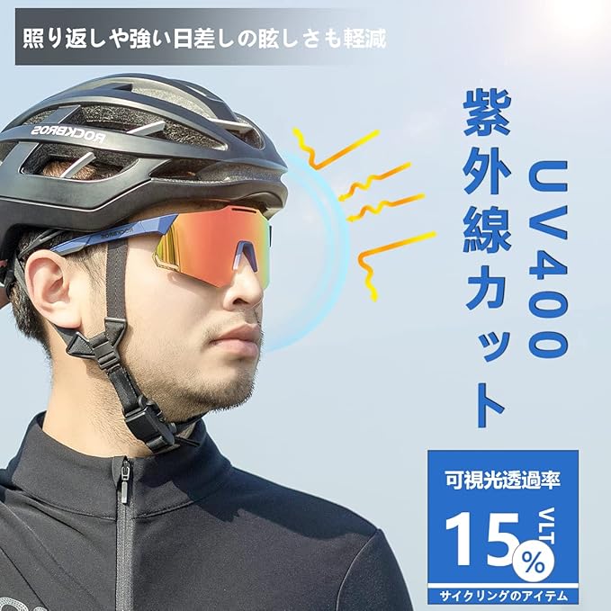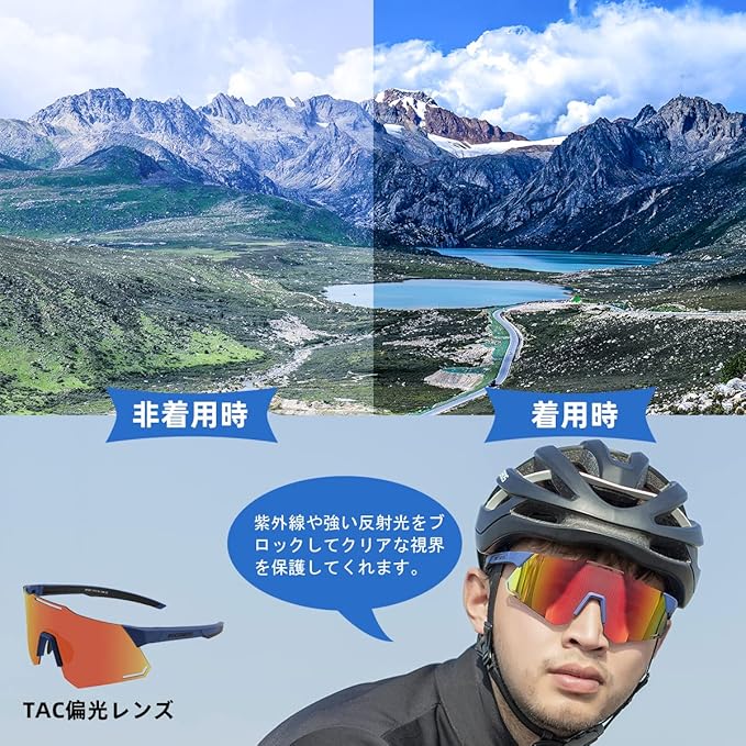 【大適用・品質保証】男女兼用のタイプで、スポーツサングラスならではの、スタイリッシュな仕上がりです。アジア人の顔に基づいて開発されて、日本人の方もお気軽に利用します。サイクリングはもちらん、釣り、運転、バイク、野球、ゴルフ、ランニング、登山、旅行、パイロット、ハイキング、ツーリングなどのアウトドア活動にも大活躍します。弊店は六か月間の保証期間を設置しており、万が一商品に何か問題がございましたら、遠慮せずご連絡ください。返金、返品や商品交換などのサビースを対応させていただきます。