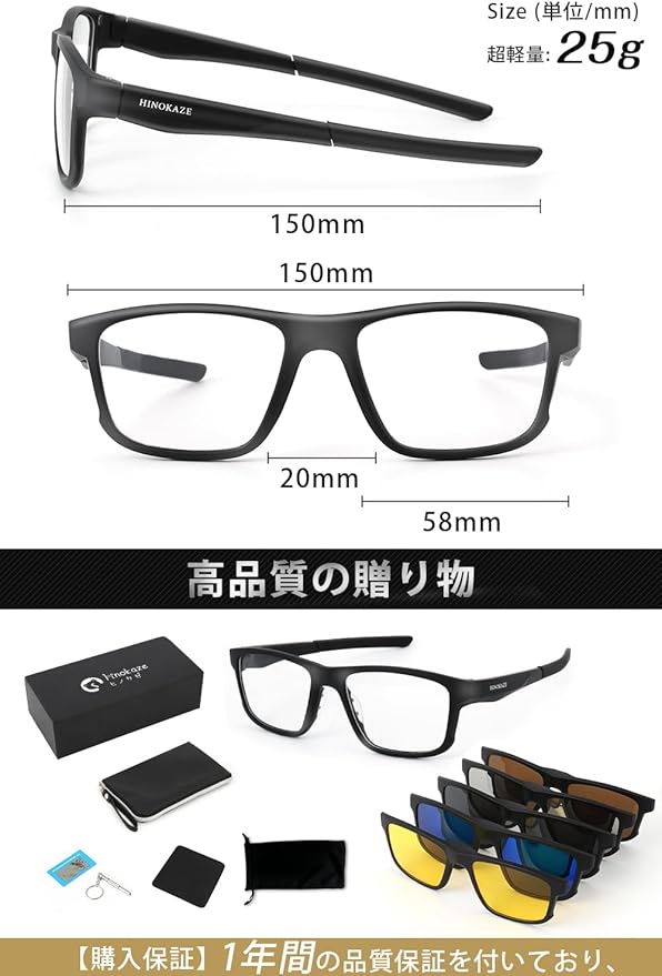 [HINOKAZE] サングラス メンズ 【5レンズ付き 磁気式レンズ瞬時切り替え】 偏光スポーツサングラス 超軽量 UV400 偏光 調光サングラス レディース 自転車/釣り/野球/ランニング/サイクリング/ゴルフ