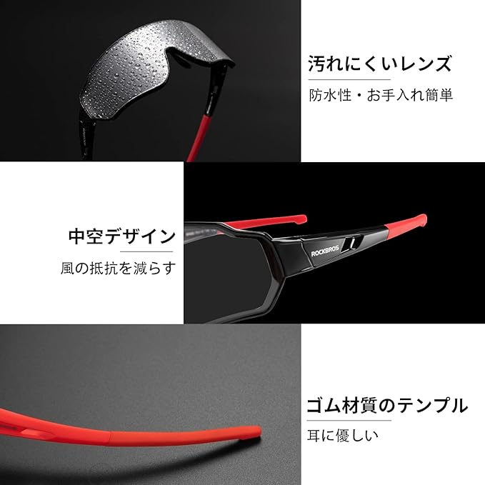 ROCKBROS(ロックブロス)偏光サングラス 釣り 調光サングラス スポーツサングラス 軽量 UV400 自転車 ゴルフ 登山 ピクニック 防風 メンズ