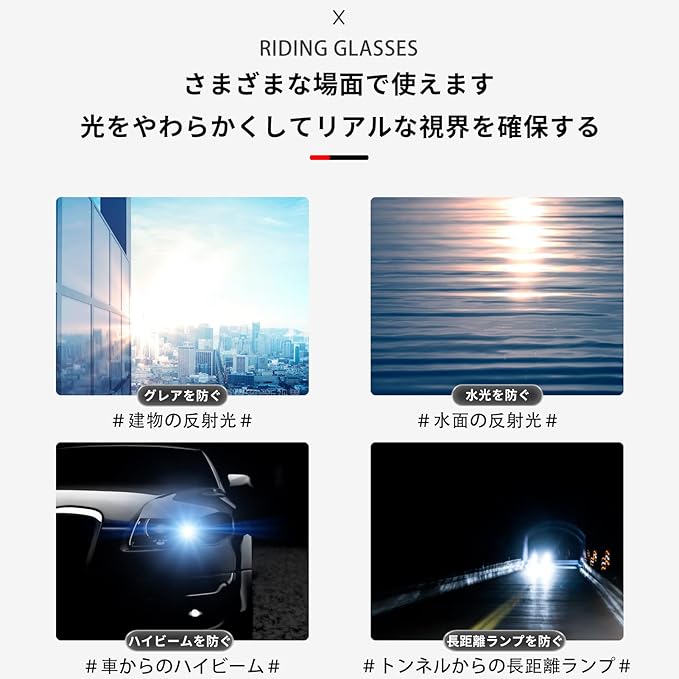【UVカット】UVカット率は99%以上、UV400!強い紫外線と眩しい光線から大切な目を保護します。レンズが適切な濃度に暗くなり、目への負担を軽減して、見やすいです。