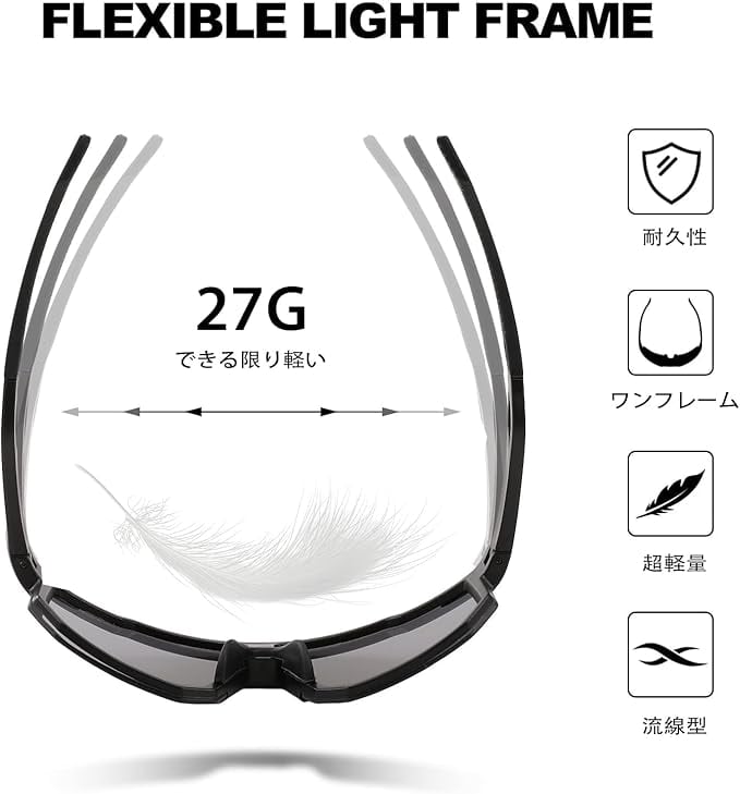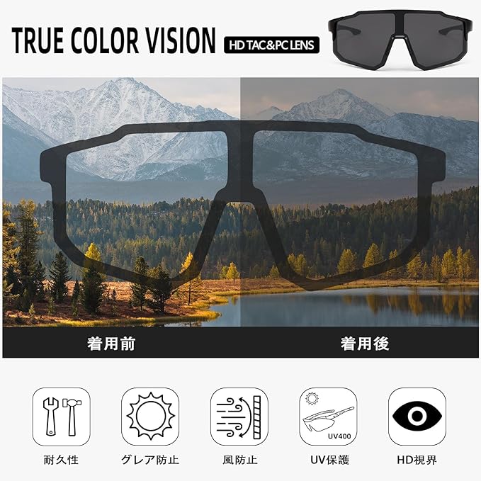 【軽量で丈夫なデザイン】このスポーツサイクリンググラスは、軽量かつ耐久性に優れた素材で作られており、非常に快適な着用感を提供します。埃や石が飛び散るのを効果的に防ぎます。