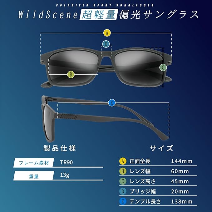 [Wild Scene] サングラス メンズ 偏光 グラス スポーツ クラシック UV400 【視界のクオリティを変える偏光グラス】 uvカット 軽量 釣り用 運転用 登山 バイク ゴルフ マリンスポーツ