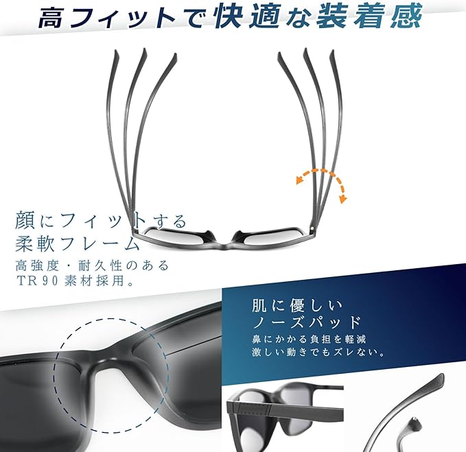 ✅【スペック】UV400 【フレーム素材】TR90【レンズ素材】 TAC-HD偏光フィルター