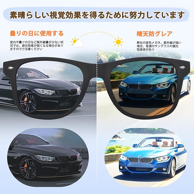 UVカットの偏光サングラスです - 偏光サングラスは、紫外線の透過を99%以上カットし、光の透過率を効果的に減少させることができます。サングラスのサイズが合わないって困っています」という多くの声にお答えして日本人の顔にフィットするサイズを採用して、激しい運動でも、ぴったり掛けることができ、落下するか耳が痛いことにご心配いりません