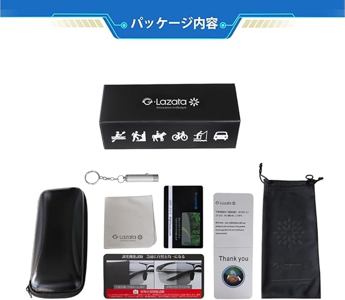 ➤【ご注意】調光レンズとは太陽光の紫外線の強弱によって変色しますので、社内、室内、曇り空など紫外線の弱いでは変色調光が弱くなることを予めご了承ください。調光効果につきましては付属の紫外線照射灯(ブルーライト)とテストカードにてご確認ください。