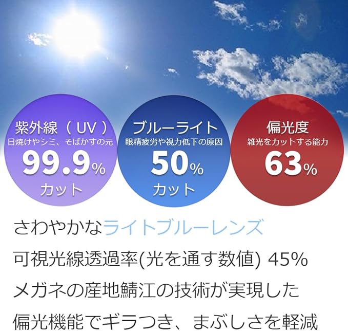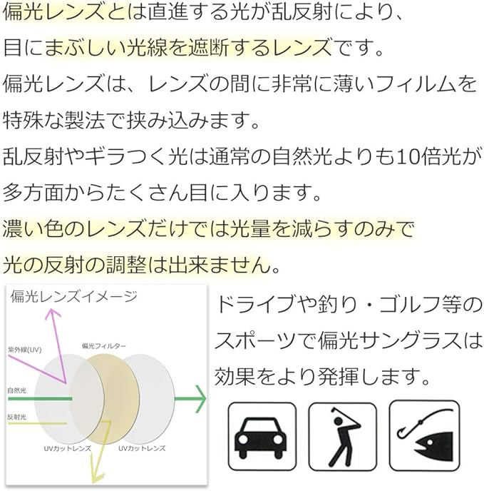 ■日本製偏光レンズで有害な光線からしっかり目を守る。