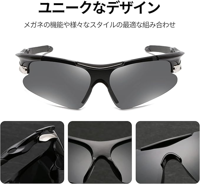 ★【TR90フレーム・耐用性抜群】 当スポーツサングラスはTR90製フレーム採用、安定感抜群、超軽量、弾力性、耐衝撃性が非常に優れる特徴があり、長時間着用しても違和感がありません。落下するときにも破損しないです。