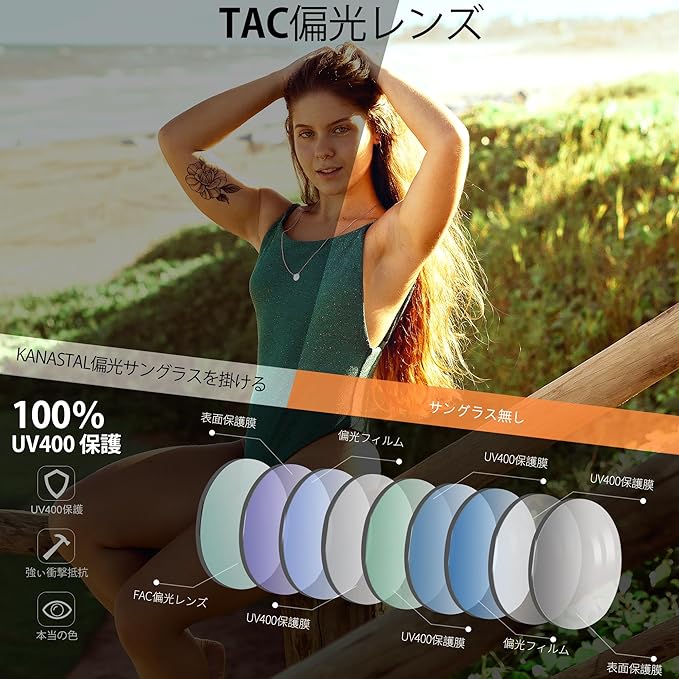 [KANASTAL] サングラス レディース メンズ 偏光 uvカット 車 運転用 へんこう さんぐらす おしゃれ 軽量 sunglasses for women men
