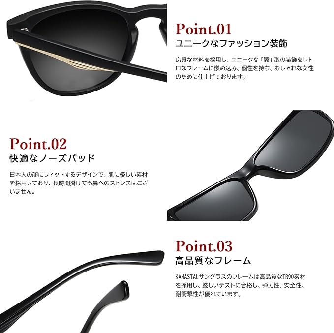 クラシックレトロデザイン: KANASTAL 偏光 サングラスデザイナーは伝統と創意の結合を研究し、ファッション性を手に入れ。は補強合金ヒンジを採用し、偏光サングラスを長持ちさせる。ハイライトは翼形の合金ヒンジで、顔の形を完璧にぴったりすることができます、あなたの魅力を高めます