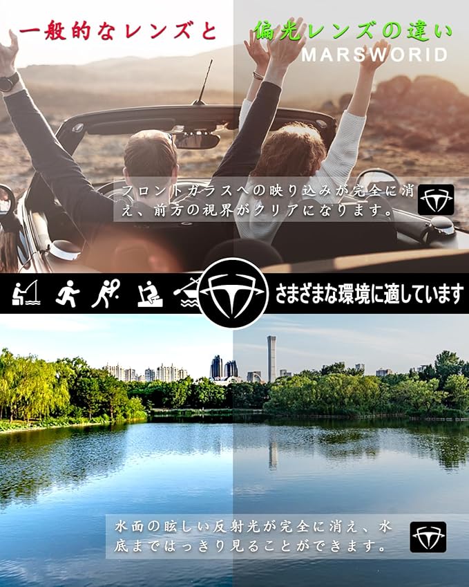 [MARSWORID] サングラス メンズ 運転用 偏光サングラス 超軽量 UV400 紫外線カット ドライブ 抗衝撃 スポーツ ドライブ ランニング 釣り 登山 ユニセックス