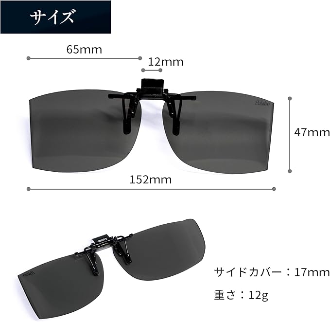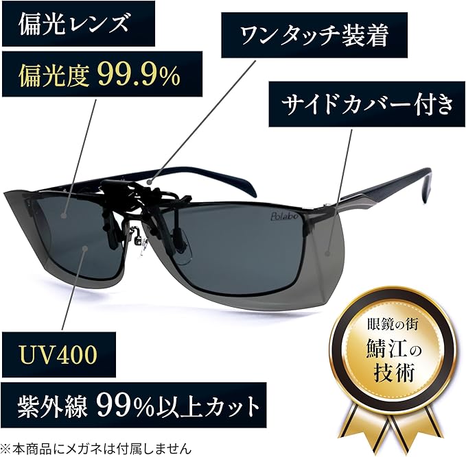 [冒険王] 跳ね上げ クリップオン サイドカバー メガネにつける サングラス 跳ね上げ オーバーグラス 偏光サングラス CAR