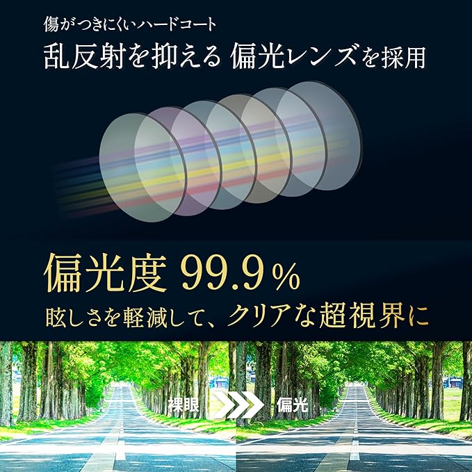 仕様:偏光度99%以上、UVカット、ブルー光カット