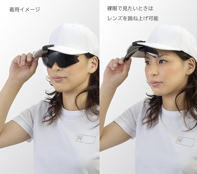 [冒険王] クリップオン サングラス ゴルフ 鯖江企画 帽子につける 跳ね上げ式サングラス オーバーグラス