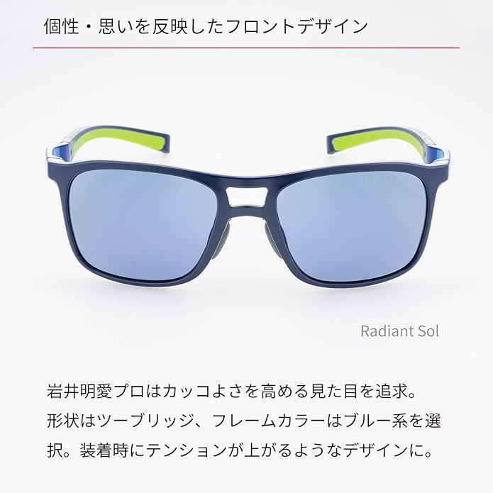 岩井明愛プロ・千怜プロがプロデュースするスポーツカジュアルモデル。デザインだけでなく、スウィングでもずれないフィット感を実現するテンプル構造などのこだわりが詰め込まれている。