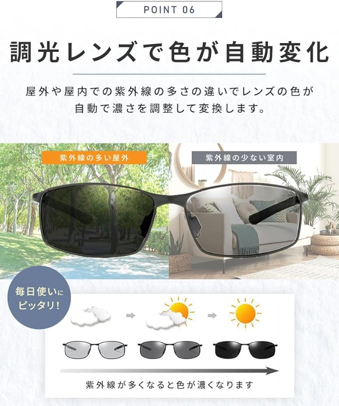 [bh life] サングラス カラーレンズ 偏光 調光 UVカット スポーツ メンズ レディース ミラーレンズ ドライブ アウトドア 変色 釣り ゴルフ ウェリントン UV400 保護 超軽量 運転用