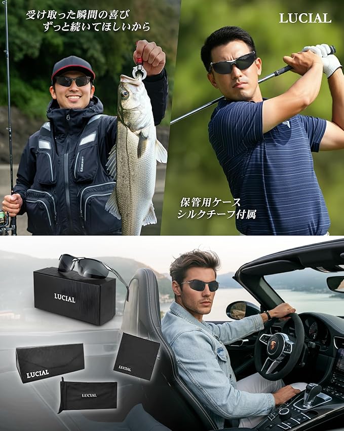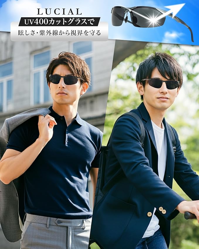 [LUCIAL] 超偏光 極薄レンズモデル 運転用 スポーツサングラス UV400カット仕様 釣り ランニング ゴルフ [アルミ合金採用 わずか25gで高耐久性]