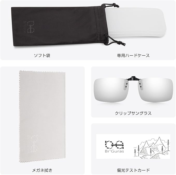 [Br'Guras] 眼鏡の上から クリップオン サングラス レジャー 超軽量 偏光 機能付き uvカット